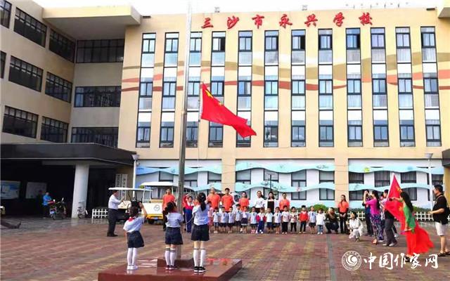 采訪團第一站來到三沙市永興學校,當時正是早上8點鐘,學校的孩子們正在樓前的空地舉行升旗儀式,采訪團的團員們也加入了升旗的隊伍,向著國旗行注目禮。隨后,采訪團成員參觀了學校的教學場所和辦學展覽,觀看了學生制作的各種手工作品。永興學校是中國最南端的學校,于2015年投入使用,目前學校有27名學生,都是漁民和守島軍人的子弟,畢業于瓊臺師范學院的10名教師在此執教。作家們與老師和學生交談中,感受到了永興學校的不一樣的情懷。作家王松告訴記者,“看到那個升旗手踮著腳尖小心翼翼地把國旗的繩子拴好……我不禁流淚了,到這里的每一刻,都能強烈地感覺到‘愛國’這兩個字?!?/p>