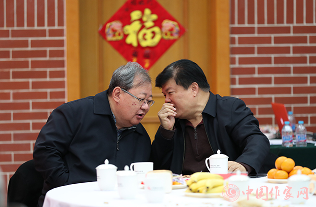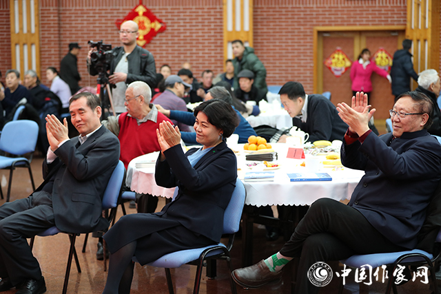 在喜慶歡快的樂曲聲中,與會作家們親切握手,熱情交談,合影留念,互致新春祝福,回顧過去一年文學事業繁榮發展取得的成就,展望新一年中國文學的美好未來。部分中國作協會員、青年干部職工和藝術家們表演了精彩的文藝節目。