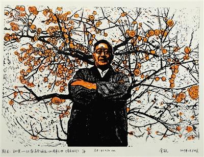 《秋實——紀念老舍誕辰120周年之四》(套色木刻) 金銳作品
