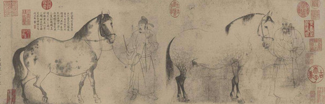以上,是對百年前《五馬圖》被借出深宮為芥川龍之介所見始末的查考。但芥川龍之介在陳府過目的,遠不止《五馬圖》一幅。芥川龍之介看到的,就包括《唐宋元畫冊》、燕文貴《秋山蕭寺圖》、宋徽宗《臨古圖》、王蒙《林泉清集圖》、王時敏《晴嵐暖翠圖》、郎世寧《乾隆肖像》《百駿圖》等。這些畫中極品的震撼力,讓這個在日本如日中天的小說家產生了想在北京留學的念頭。如今,這些清宮藏畫中的至寶已流散于世界各地,在任何一個空間里飽覽這些書畫的全部真跡都已不復可能。