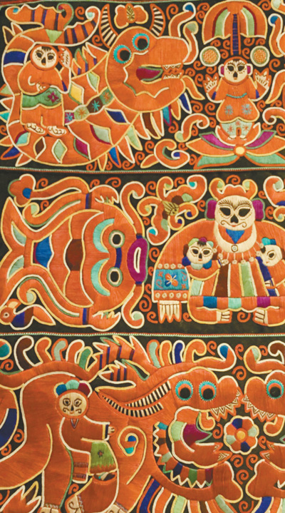 中國的四大名繡早已名揚海內外,精致、雅潔、詩情畫意;苗繡則不然,它以神秘的氣息、樸拙的造型甚至有些萌萌的幽默,一下子開拓了我們的審美視野。