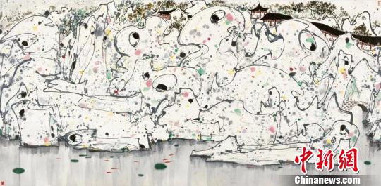 展覽中最引人注目的當屬吳冠中創作于1988年的《獅子林》。該作品是吳冠中最為重要的藝術作品之一。該畫所表現的蘇州獅子林和吳冠中一個重要理論觀點有關,即“風箏不斷線”的理論。他認為,繪畫抽象就像是放風箏,風箏是作品,是“從生活中來的素材和感受,被作者用減法、除法或別的法”,抽象成的某一種藝術形式,而觀眾是天空,要讓風箏飛上天空,藝術家手中“須有一線聯系著作品與生活中的源頭”。