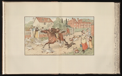 全彩插畫,出自圖畫書《約翰·吉爾品趣事》(1878年),“凱迪克圖畫書獎”的標志就是根據這幅圖畫設計而成。