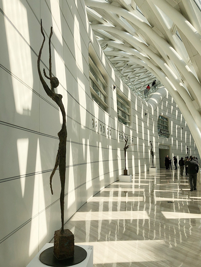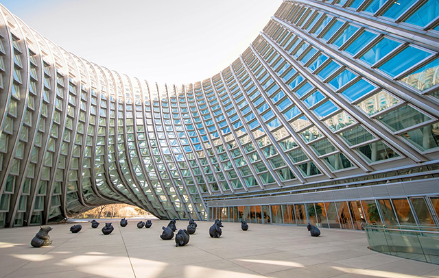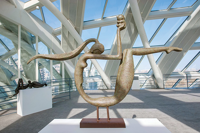 位于北京東三環附近的鳳凰中心擁有獨特的建筑風格,其造型創意來源于莫比烏斯環,空間與文化在拓撲的意義上被連接了起來,所形成的連續整體感與錯落交織的層次及環形結構,象征著鳳凰本身的特征屬性,展現包容與開放的藝術風格。作為鳳凰衛視2019年的年度大展,“美無止境——韓美林的雕塑世界”作品展在此舉辦,暗合著一段藝術精品與建筑佳作的奇妙緣分。主辦方表示,該展覽冀望以建筑的無限性來回應韓美林藝術生命之永恒,詮釋了建筑、雕塑與心靈之間不可分割的因緣。通過這些作品的展示,當代藝術與現代建筑實現了完美融合,更加展現出強烈的視覺張力。二者的結合相映成輝,仿佛構成了一幅穿越時空、超越地域、在交融中創造著無限未來的美妙畫作。
