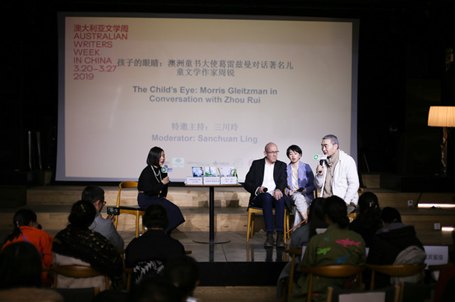 3月23日,在洋溢著春日暖意和文藝氣息的798藝術空間,來到中國參加第十二屆澳大利亞文學周的澳洲童書大使莫里斯?葛雷茲曼與中國兒童文學作家周銳展開了一場關于孩子與故事的對話。本次活動由澳大利亞駐華大使館主辦,中國文學海外推介網站紙托邦承辦,特邀兒童教育作家、童書出版人三川玲主持。