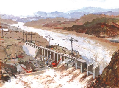 吳作人油畫《黃河三門峽·中流砥柱》,1950年代中期