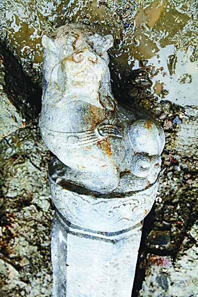 黃泗浦遺址宋代河道底部石欄桿上的石獅。
