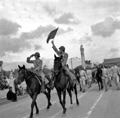 1949年10月1日,騎兵部隊通過天安門城樓接受檢閱。孟昭瑞