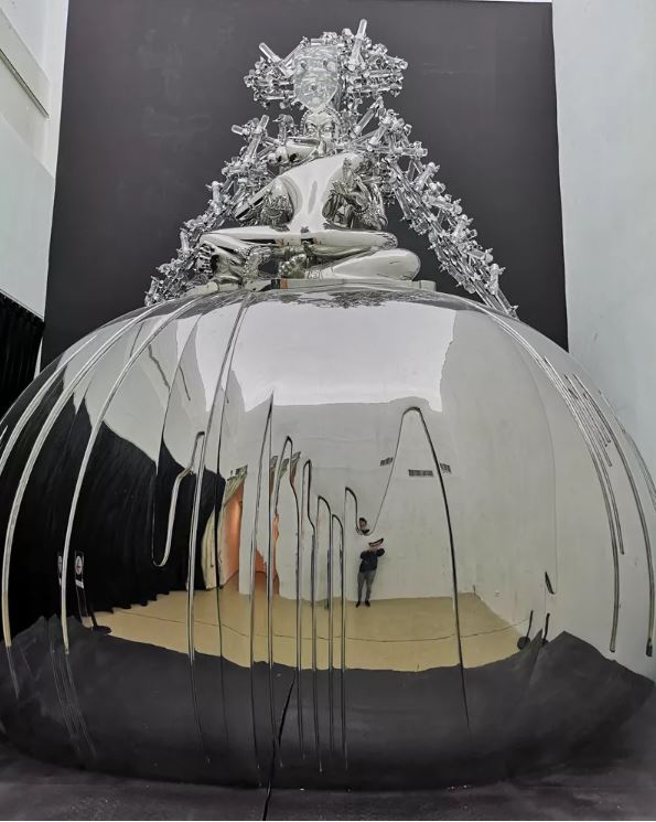 《宮巢》 不銹鋼、人工水晶、機械裝置、手工蛋 560 x 420 x 380cm 2018