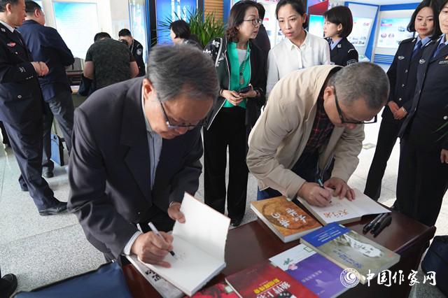 劉醒龍、劉慶邦在鐵道警察學院館藏書籍上簽名