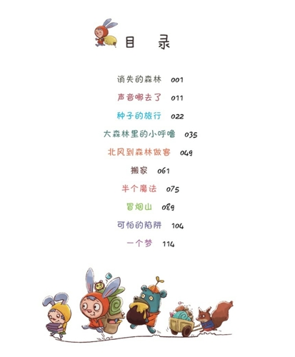 《彩色的樹葉裙》《長鼻怪和膽小鬼》《半個魔法》《兔子和蚯蚓的日記》