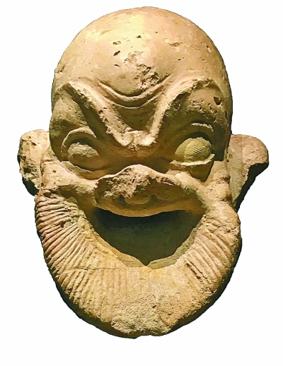 阿伊哈努姆遺址出土的面具型噴水口造型源自古希臘喜劇演出的假面具。本報記者 吳瀟怡攝/光明圖片