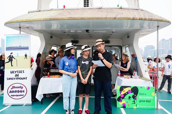 上海作為文化藝術重地,愛爾蘭駐上??傤I事館已經連續多年舉辦生動熱烈的活動來慶祝布魯姆日。6月16日的黃浦江畔,烈日灼灼,一群戴著彩色領結、愛爾蘭草編帽和白色羽毛胸針的游客顯得格外引人注目。在江邊游輪上,擺放著布魯姆的巨幅彩色畫像,還有手風琴、豎琴和一摞摞厚厚的《尤利西斯》。走進船中,宛如置身《尤利西斯》中的經典場景,如:Joyce畫廊、Davy Byrne酒吧、Molly的客廳、及Sandymount Strand海濱。賓客們身著斑斕的禮服,品嘗著都柏林風味的芝士蛋糕,在奏響的音樂聲中探訪喬伊斯的內心世界。