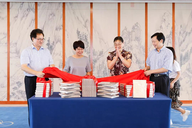 劉東、吳笛、張冰和聶珍釗教授為《外國文學經典生成與傳播研究》出版面世剪彩。