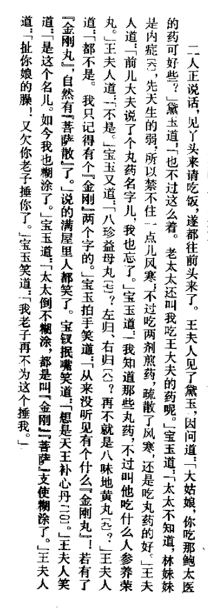 小說第二十八回,介紹林黛玉所服用的“天王補心丹”(據北京師范大學出版社程甲本底本抄注本,1987年版)