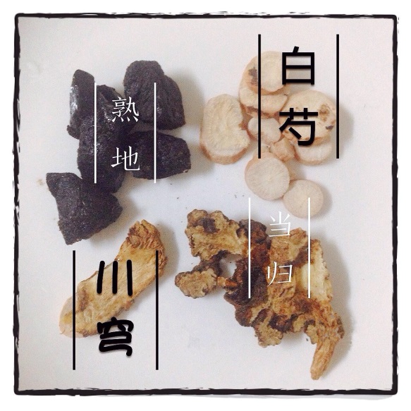 四物湯所用藥材:熟地、白芍、川穹、當歸(圖片來源于網絡)