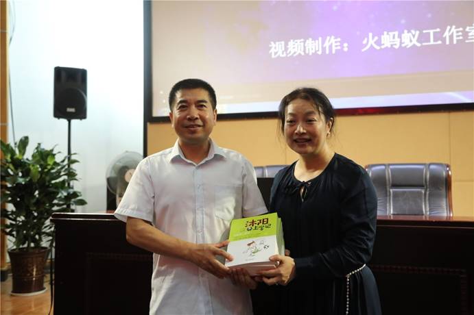 黃詠梅向長興優秀少年作家代表贈送圖書并合影留念