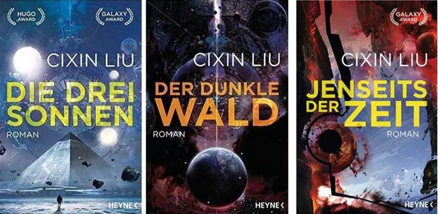 從左到右依次為:《三體》(Die drei Sonnen),《三體II?黑暗森林》(Der dunkle Wald),《三體III?死神永生》(Jenseits der Zeit)