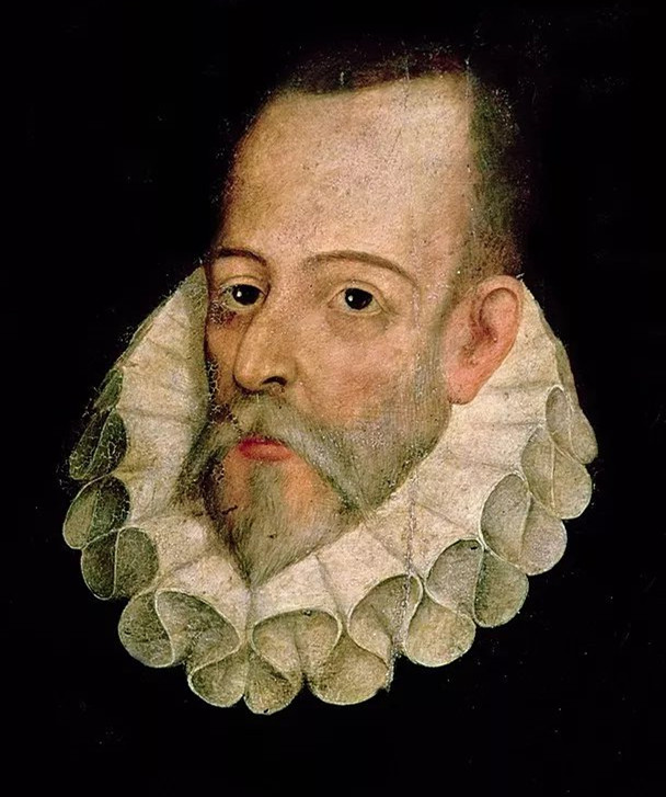 塞萬提斯出生在沒落貴族家庭,父親大學肄業后做游醫,一生流離失所又窮困潦倒。塞萬提斯生于1570年,自幼夢想成為榮耀的騎士。1570年他如愿從軍,成為一名戰士,次年參加抗擊土耳其的勒班多海戰,在沖上敵艦英勇戰斗時身負重傷,不幸失去左臂。戰后,塞萬提斯攜帶總督和元帥的保薦信回國,途中遭遇土耳其海盜伏擊被俘虜,并賣到阿爾及爾當奴隸。他三次謀劃逃跑沒能成功,終于在1580年經由一名神父搭救回到西班牙。此時戰爭已經結束許久,曾經的榮耀被人們忘卻,塞萬提斯失去了獲得體面工作的機會,只得在無敵艦隊中做些后勤雜務。隨著無敵艦隊的瓦解,他很快再次失去工作,并被人誣陷入獄。出獄后,塞萬提斯托各種關系,找了一份辛苦的稅務官差事做,并被派到最偏遠的山區。收稅的回憶絕對談不上美好,一方面無人愿意上繳稅金,一方面又天天挨罵。兩年后,由于儲存稅金的私立錢莊倒閉,塞萬提斯再次入獄。之后,他還曾因沒有準備好私生女的嫁妝被私生女告上法庭,因家門口驚現無人認領的死尸而被警察抓包抵罪。類似這樣的無頭官司,塞萬提斯一生經歷了不知多少,世態炎涼給他的內心留下了難以磨滅的烙印。