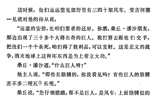 堂吉訶德迎戰風車(據人民文學出版社網格本,1978年版)