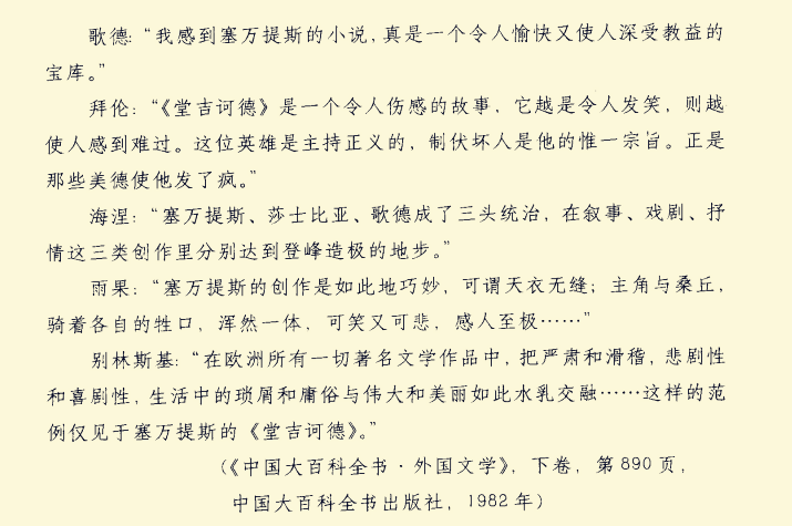 歌德、拜倫、海涅、雨果、別林斯基對《堂吉訶德》的評價,轉引自徐葆耕《西方文學十五講》