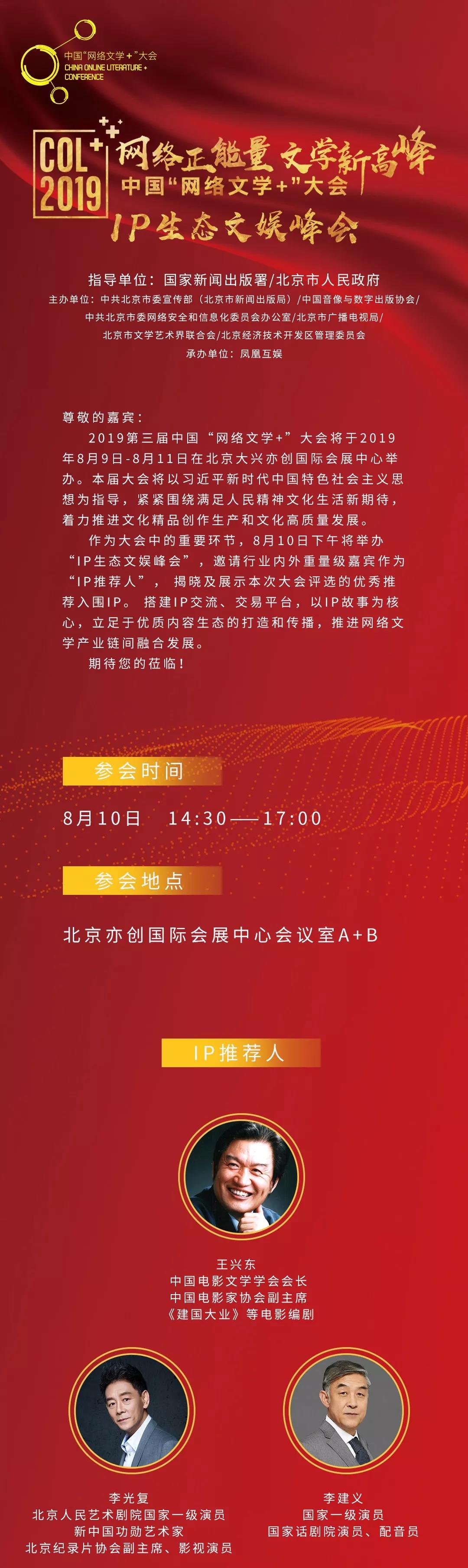 作為每年網絡文學行業最重要的大會,第三屆中國“網絡文學+”大會將于8月9日-11日在北京亦創國際會展中心舉行,大會以IP故事為核心,立足于優質內容生態的打造和傳播,推進網絡文學與相關產業融合發展,本屆大會通過IP征集、組織IP路演、IP全國分會場活動、舉辦IP生態文娛峰會,為行業提供IP交流、交易平臺。