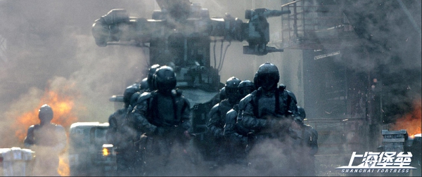 《上海堡壘》劇照,這是和外星人作戰的人類部隊,外星人形象完全沒有出現在影片上映前的宣傳中。