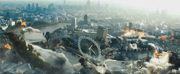 看著人類辛苦創造出來的城市文明被毀滅,這是外星人入侵、世界末日這一類災難性科幻電影的獨特魅力。不得不承認,欣賞毀滅,這件事是有相當強烈的快感的。過去這二十年,CG特效的成熟,讓好萊塢的科幻電影為我們提供了一次又一次這樣的快感。當年在《獨立日》里面,白宮被外星飛船給轟成碎片,這一幕在當時可以說是震撼之極。打這以后的好萊塢電影可以說是一發不可收拾,基本上每逢大片,都要毀滅個把美國的地標建筑。國會大廈、白宮這些自不必說,最慘的非那座金門大橋莫屬,在電影里被毀滅了一次又一次。