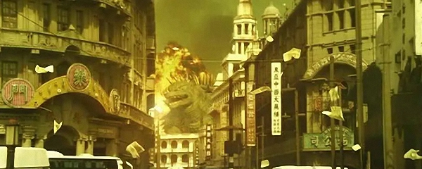 遺憾的是,由于各種獨特的原因,中國的各種建筑一直以來都沒能很好加入到好萊塢電影的這種毀滅大合唱里面。在《變形金剛2》的開頭,原本有一個擎天柱從東方明珠塔上跳下來的鏡頭,結果在公映的版本里面這個鏡頭剪掉了。影片第一場戲本來是汽車人和霸天虎在上海高架路上鏖戰,結果字幕被含糊其辭改成了中國某城市。反倒是在日本拍的《哥斯拉之終極戰役》(2004)里面,有一場戲是外星人放出各種不同的怪獸襲擊地球上的各大城市,其中有一只怪獸襲擊的是上海,可惜日本東寶公司出品的《哥斯拉》至今仍堅定保持模型特效的原始手法,怪獸襲擊上海的畫面粗陋不堪。