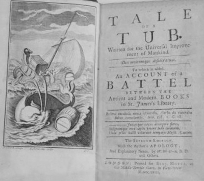 斯威夫特在文化上是個古典主義者。1701年他從三一學院獲得神學博士,在十七世紀的西方大學里,神學與古典哲學的關系非常緊密,所以他不免受到古典主義的熏陶,具備拉丁文學和文化修養。斯威夫特身處新古典主義盛行的世紀,在這個以推崇理性著稱的時代,一切政治、宗教制度以及陳規陋習都被送到理性的法庭面前進行審判。個人是身處歷史中的個人,斯威夫特的文化選擇和時代語境密切相關。文體上,斯威夫特效仿賀拉斯(QuintusHoratiusFlaccus)、維吉爾(Virgilius)和奧維德(PubliusOvidi?usNaso)等古羅馬文學家,用理性駕馭作品,行文清晰有條理,善用巧智(wit)。十七世紀的巴洛克和洛可可讓浮華、矯揉造作和濫用情感的藝術方式風靡一時,而新古典主義的出現在某種程度上是對這兩種藝術思潮的反駁。斯威夫特的恩主、輝格黨派外交家威廉·坦普爾爵士(LordWilliamTemple)便是新古典主義的先驅人物,坦普爾曾站在古典主義的立場上寫過關于古代學問與現代學問的文章,在文章中贊賞了波義耳 (CharlesBoyle)編注的《法拉里斯的書信》(EpistlesofPhalaris,1695),因此遭到沃頓(William Wot?ton)和本特利(RichardBent?ley)的批評。作為其秘書的斯威夫特寫出了為自己恩主辯護的《書的戰爭》,指責現代作家為蜘蛛,造出的都是糞便和毒素,而古典大師則是蜜蜂,帶來甜蜜和光明。1714年,新古典主義的另一代表蒲柏(AlexanderPope)和斯威夫特一起倡導建立了斯克里布萊拉斯俱樂部(ScriblerusClub),寫了不少詩歌和散文。他的散文風格冷靜,充滿巧智。其詩歌更是帶有典型的古典主義風格,格式拘謹,效法古希臘抒情詩人品達(Pindar),模仿新古典主義者德萊頓(JohnDryden)和考利(AbrahamCowley)。