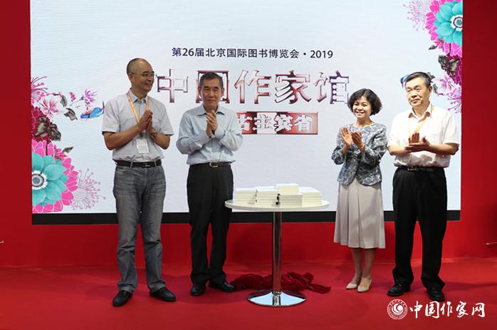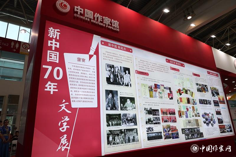 今年是新中國成立70周年,也是中國作協成立70周年。本屆“中國作家館”以“新中國文學70年”為主題。吳義勤在致辭中說,70年來,我們偉大的祖國在黨的領導下,一路披荊斬棘、乘風破浪,走向輝煌、走向復興。70年來,中國文學與新中國一路同行,與時代一同成長,不忘初心、砥礪奮進,精心描繪廣大人民的奮斗歷程,真情記錄社會主義中國發展變遷,奉獻出一批又一批文學精品,充分發揮文學藝術引領風尚、培根鑄魂的作用。特別是黨的十八大以來,在習近平新時代中國特色社會主義思想指引下,廣大作家和文學工作者堅持與時代同步伐,堅持以人民為中心,堅持以精品奉獻人民,堅持用明德引領風尚,全身心投入中國特色社會主義新時代,不斷推出精品力作,我國文學事業呈現出百花競放、蓬勃發展的繁榮景象。今年的“中國作家館”聚焦新中國文學70年,就是為了全面總結新中國催生新文學的繁榮發展歷程,全景展現中國文學從新起點邁進新時代取得的輝煌成就,并以此向不斷進步、繁榮興盛的中國文學致敬,向辛勤耕耘、潛心創作的中國作家致敬。也期待廣大讀者和文學愛好者通過“中國作家館”進一步增進對中國當代文學的了解,在閱讀文學作品的過程中獲得前行的信心和力量。