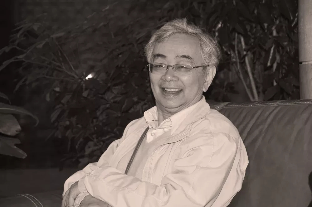 1983年3月,吳貽弓和石方禹(右)、鄭振瑤(左)于馬尼拉,《城南舊事》在第二屆馬尼拉國際電影節上獲獎后合影