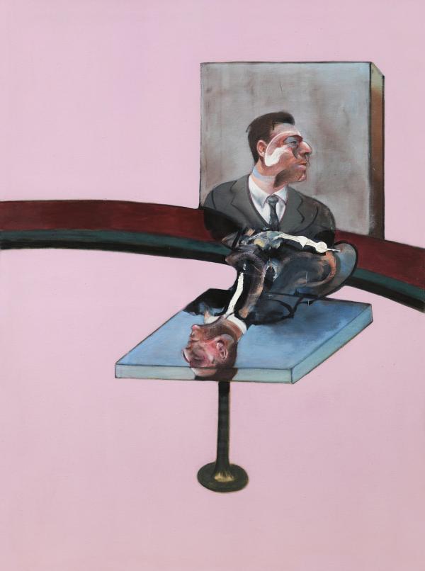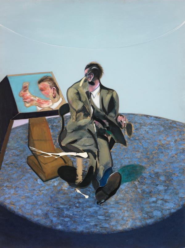 《喬治·戴爾鏡中的畫像(1968年)》,作品展示了弗朗西斯·培根的情人,他于1971年因藥物和酒精過量而死亡