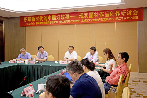 本次研討會由中國作協網絡文學研究院、浙江省網絡作家協會、杭州市上城區文化創意產業發展中心、浙江華云文化集團聯合主辦,是第十三屆(2019)杭州文化創意產業博覽會的重點論壇之一。中國作協副主席、中國作協網絡文學委員會主任陳崎嶸,中共浙江省委宣傳部文藝處處長劉如文,浙江省作協副巡視員、黨組副書記、浙江省網絡作協主席曹啟文,中共杭州市文聯黨組成員、副主席唐龍堯,浙江省網絡作協副主席、浙江華云文化集團董事長汪海英亦應邀出席。