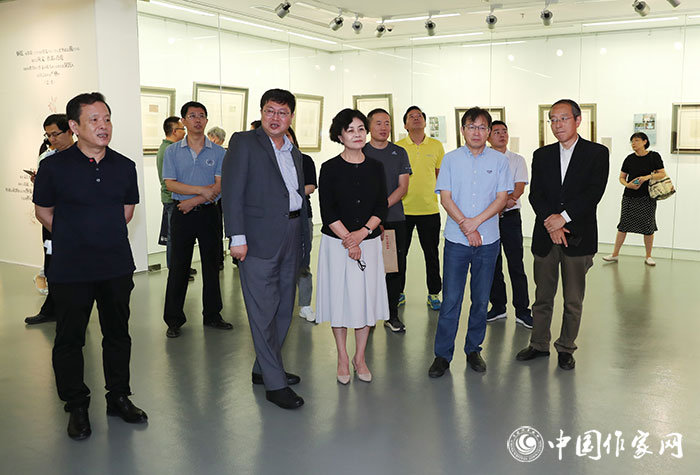 開幕式結束后,鐵凝、李敬澤、王偉等步入展廳,參觀展覽