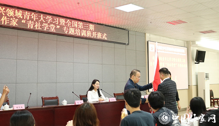 全國青少年井岡山革命傳統教育基地管理中心黨委委員、副主任朱迎參加開班儀式并為培訓班授旗。朱迎對網絡作家們的到來表示歡迎,帶大家回顧了井岡山精神和作為革命圣地的井岡山的重要歷史意義,并希望大家通過此次培訓學有所成、學有所獲、學有所得。