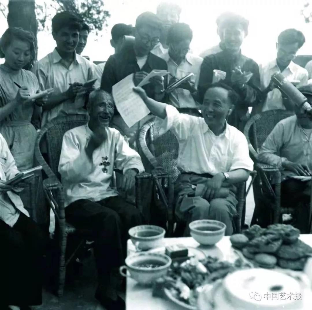 新中國成立前夕,1949年7月,中國文學藝術界聯合會成立。緊隨其后,中國民間文藝研究會(中國民協前身)緊鑼密鼓地開始籌備,從南方來北京參加中國文聯成立大會的鐘敬文先生為了中國民間文藝研討會的成立被特意留在北京工作生活,1950年初春,中國民間文藝研究會在北京宣告成立。民研會是以民間文學、民間藝術、民間文化為主要研究對象,整合、組織、團結、集中了當時我國從事民間文藝研究、表演、創作、教學、出版、捜集、釆風等領域里最著名的一大批專家學者和文藝大家,組成了強大的理事會作為領導機構。時任政務院副總理、中國科學院院長、中國文聯主席的郭沫若當選首任理事長,鐘敬文和老舍任副理事長。這樣的機構設置,傳遞出一個明確的政治文化信息:新中國高度重視人民文藝,由人民自己創造的民間文藝被置于國家文化殿堂和賦予其全新的歷史地位,標志著隨著億萬人民群眾在政治上、經濟上的翻身,也迎來了文化上翻身做主人的時代。