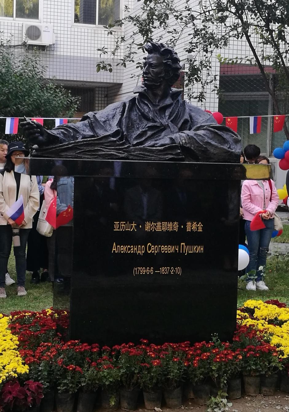 為慶祝中華人民共和國成立70周年、中俄建交70周年、普希金誕辰220周年及首都師范大學建校65周年,10月8日,首都師范大學外語學院、普希金之家北京分部主辦了普希金雕像揭幕儀式,儀式在首都師范大學外語學院秋意盎然的花園中舉行。