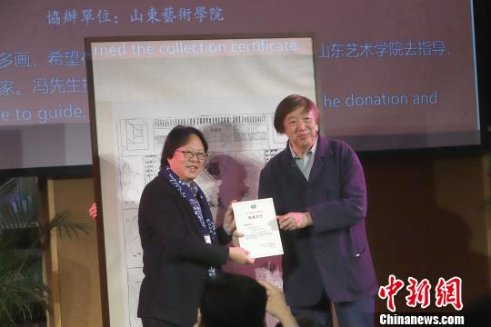 馮驥才向王力克頒發捐贈證書。 張道正 攝