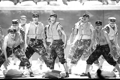 每個時代都需要英雄榜樣的精神力量,時代召喚對英雄的深度書寫。圖為慶祝新中國成立70周年大型文藝晚會《奮斗吧 中華兒女》中的交響樂與舞蹈《戰決口》,歌頌了1998年抗洪搶險的英雄們。光明圖片/視覺中國