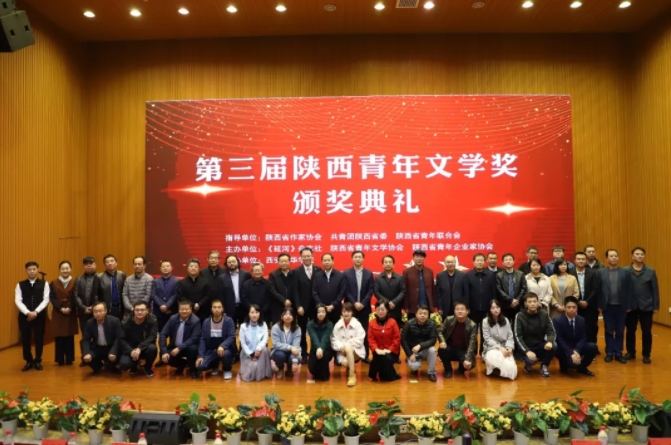 10月25日,第三屆陜西青年文學獎頒獎典禮在西安培華學院舉行。此次活動由陜西省作家協會、共青團陜西省委、陜西省青年聯合會指導,《延河》雜志社、陜西省青年文學協會、陜西省青年企業家協會主辦,西安培華學院承辦?,F場頒發了貢獻獎、中短篇小說獎、散文獎、詩歌獎、評論獎、網絡文學獎、校園文學獎等七大獎項的主獎和提名獎,肖云儒、劉尚海、楊則緯、丁小龍、馬鵬波、王潔、龐潔、韓偉、陳樸、風圣大鵬、楚清、田凌云、王安憶佳等13人獲獎。