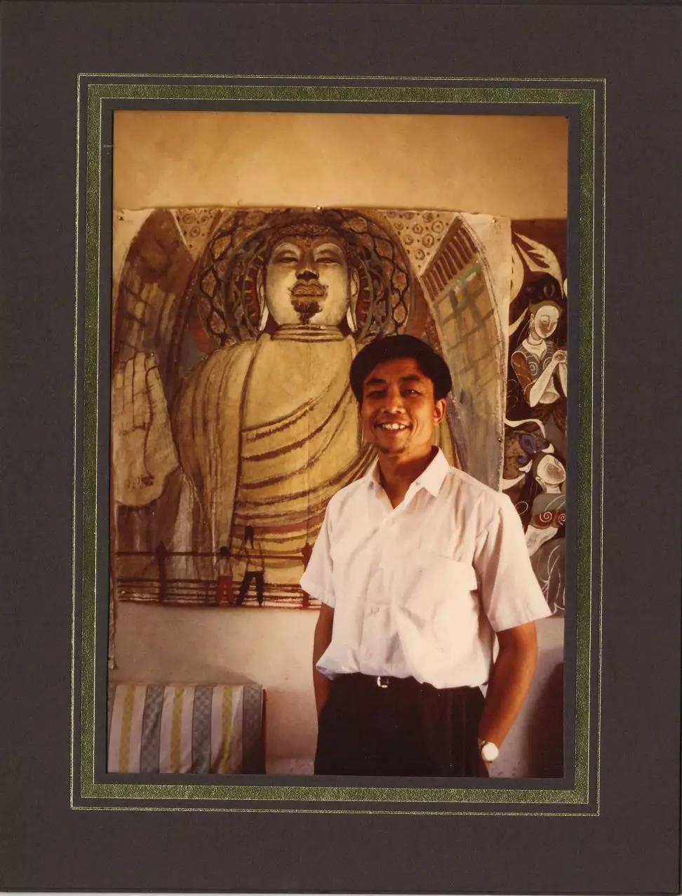 到了敦煌莫高窟,我們把行李一放,馬上就和講解員進洞上山。每天,我們早上6點起來畫速寫,7點吃早飯,吃完后馬上到洞口等管理員開門,進去畫畫,一直畫到中午吃中飯,稍微休息一會兒,一直畫到天黑,等管理員催我們關門。白天忙,晚上更忙。那時,到敦煌來的都是全國各地的美術愛好者和學生,還有國外的畫家,大家對敦煌藝術非常崇拜,一到晚上就互相串門、交流,一說就說到兩三點。所以,在敦煌的23天里,我們每天只睡4、5個小時,回來一稱,體重掉了7斤。但我臨摹了21幅彩色壁畫,速寫畫了5本。