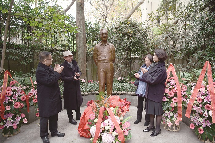 在巴金故居,鐵凝與中國作協名譽副主席金炳華,上海市委宣傳部副部長兼電影局局長胡勁軍,巴金先生的女兒李小林,魯迅美術學院院長、巴金銅像作者李象群為巴金銅像揭幕。上海作協和徐匯區領導、巴金先生的親屬李小棠、唐寧、祝云立等也參加了揭幕儀式并敬獻花籃。又一次參觀巴金故居,從一件件實物中回顧巴金的一生,感受從《家》《春》《秋》到《隨想錄》,巴金的作品在現代中國精神生長的過程中發揮的重要作用,在一代又一代中國人的成長道路上留下的深刻印記,鐵凝認為,巴老具有面向人生與世界的廣闊視野和強健的行動能力。作為一位社會的和文化的活動家,巴金的一生不僅是寫作者,也是行動者,他為中國現代文學和文化的發展作出了多方面的、創造性的努力,留下了諸多澤惠后人的業績?!鞍徒鹣壬ナ酪呀?4年了,但是今天,我們所有的人,都能夠真切地感受到巴老的熱情和性格,和他有過交往的人,讀過他的作品的人,都能夠感受到他的光和熱?!痹阼F凝心目中,巴金先生是一位巨人,他的偉大也在于他的質樸,他是一個勞作的人,他以一個勞動者的信念看待自己、對待世界,誠如他自己所言:“我一生始終保持這樣一個信念,生命的意義在于付出、在于給予,而不是在于接受,也不是在于爭取?!闭且虼?,巴老的生命才如此遼闊,他的人格、他的信念持久地溫暖著感召著后來的人們。