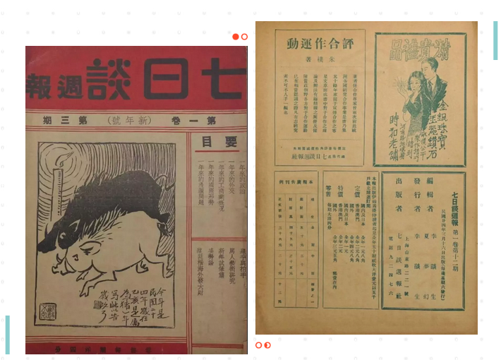 《七日談周報》第1卷第3期封面(左)和《七日談周刊》第1卷第12期版權頁(右)