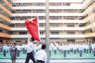 澳門濠江中學附屬英才學校舉行全校升國旗儀式。新華社發