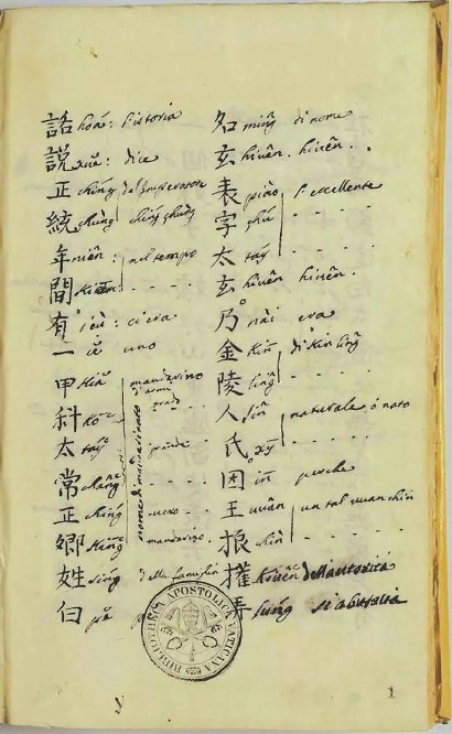 被伯希和稱為《中國短篇小說》的這件現藏于梵蒂岡宗座圖書館的文獻,是萬濟國為幫助意大利籍的傳教士學習漢語而編寫的識字材料。他以《玉嬌梨》作為底本,對漢字單字和少量語詞注音并作解釋。此件絕非《玉嬌梨》的意大利語譯本,常老師將此件稱作“中國小說西譯之嚆矢”,我認為這一論斷因缺乏事實支持而不能成立。