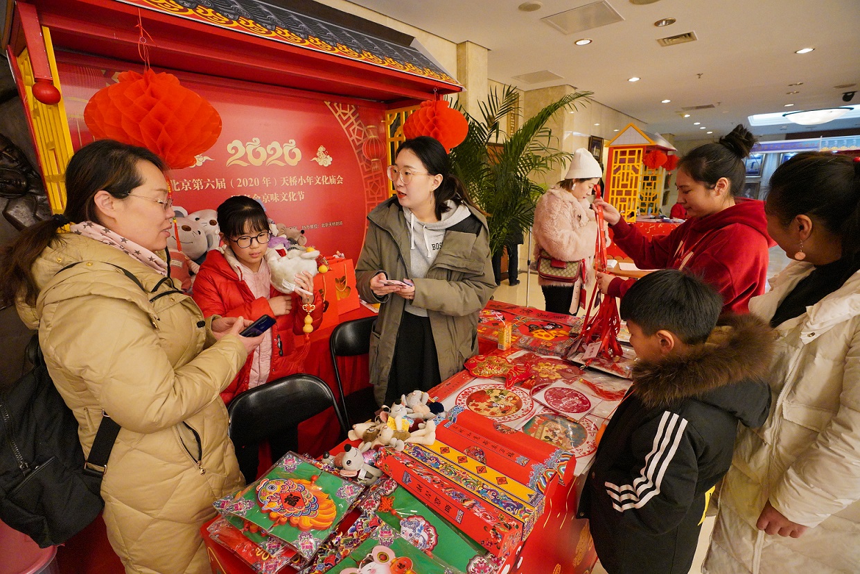 天橋小年文化廟會現場,觀眾興致勃勃地參與展賣。