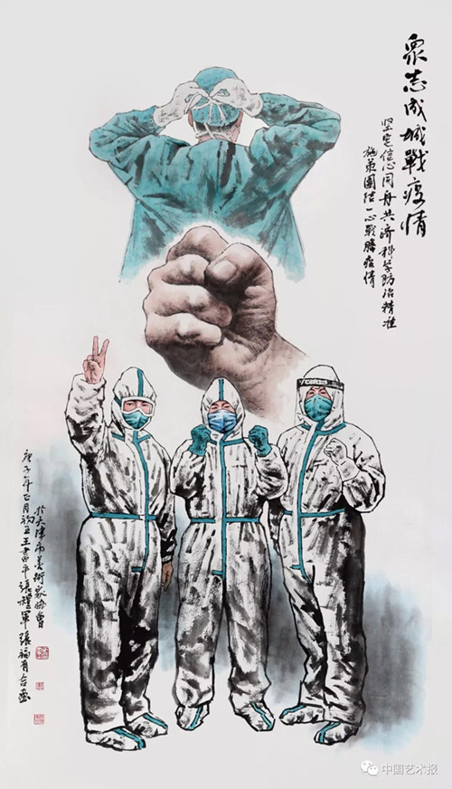 這是美術家心系戰“疫”一線的一個縮影。廣大美術家拿起手中的畫筆,一大批以抗擊疫情為主題的美術作品涌現出來,凝聚起抗擊疫情的強大精神力量。本網選發部分畫作,致敬新時代的英雄,贊美大愛精神。