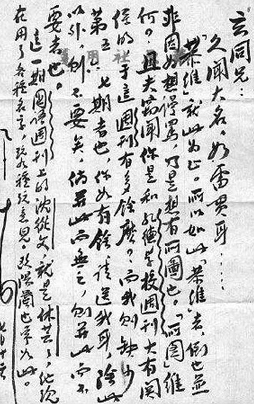 十五年秋天他上廈門直到現在,這十年之中,他與我絕無往來。十八年五月,他到北平來過一次。因幼漁的介紹,他于二十六日到孔德學校訪隅卿(隅卿那時是孔德的校務主任),要看孔德學校收藏的舊小說,我也在隅卿那邊談天,看見他的名片還是“周樹人”三字,因笑問他,“原來你還是用三個字的名片,不用兩個字的?!蔽乙庵^其不用“魯迅”也。他說,“我的名片總是三個字的,沒有兩個字的,也沒有四個字的?!彼^四個字的,大概是指“疑古玄同”吧。我那時喜效古法,綴“號”于“名”上,朋友們往往要開玩笑,說我改姓“疑古”。其實我也沒有這四個字的名片。他自從說過這句話之后,就不再與我談話了,我當時覺得有些古怪,就走了出去。后來看見他的《兩地書》中說到這事,把“錢玄同”改為“金立因”,說,“往孔德學校,去看舊書,遇金立因,胖滑有加,嘮叨如故,時光可惜,默不與談?!保ǖ?44頁)。我想,“胖滑有加”似乎不能算做罪名,他所討厭的大概是嘮叨如故吧。不錯,我是愛“嘮叨”的,從二年秋天我來到北平,至十五年秋天他離開北平,這十三年之中,我與他見面總在一百次以上,我的確很愛“嘮叨”。但那時他似乎并不討厭,因為我固“嘮叨”,而他亦“嘮叨”也。不知何以到了十八年我“嘮叨如故”,他就要討厭而“默不與談”。但這實在算不了什么事,他既要討厭,就讓他討厭吧。