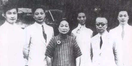 全家福。右起:五子錢德充、錢玄同、長媳徐幽湘、夫人徐貞、長子錢秉雄、三子錢三強